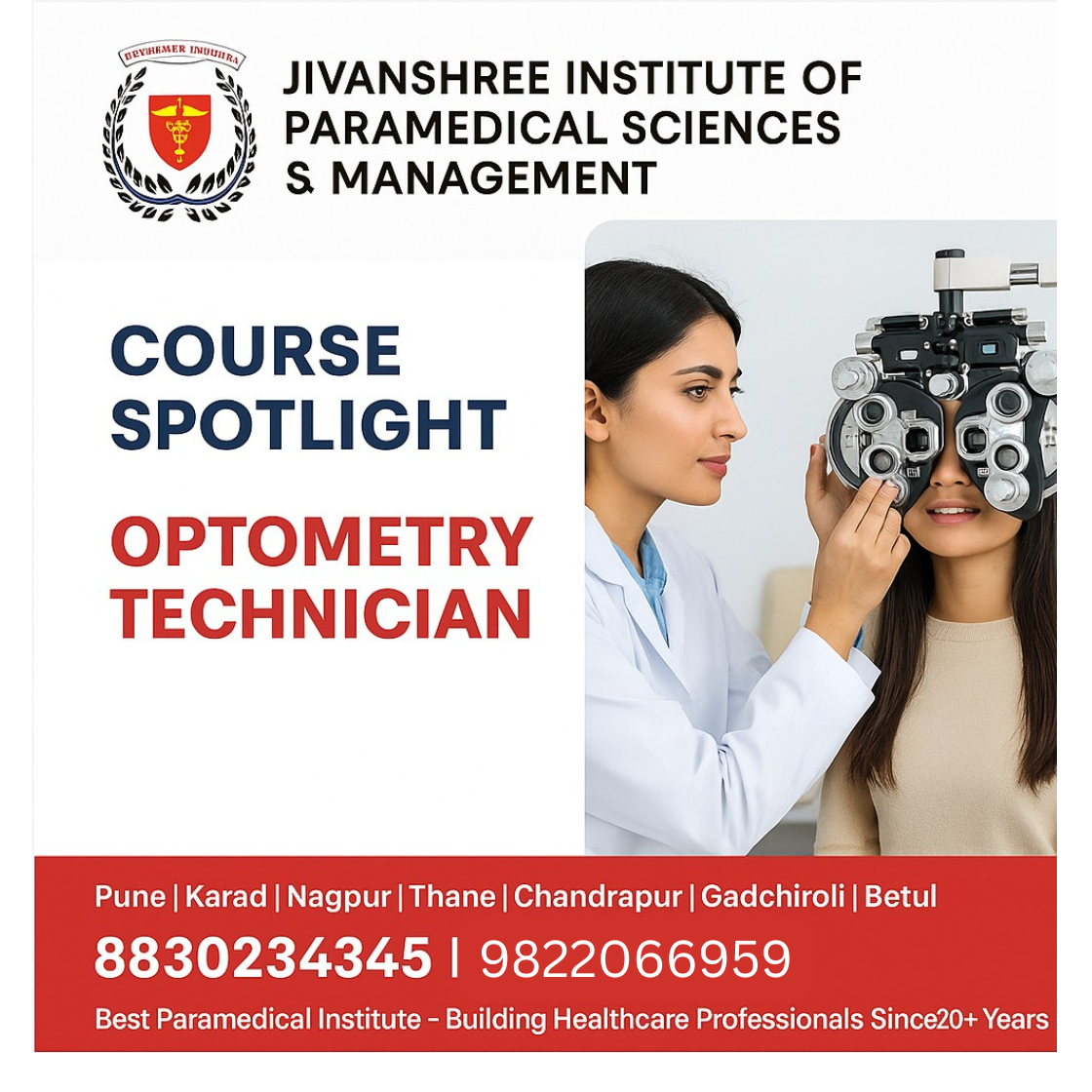 The Jivanshree Institute of Paramedical Sciences and Management proudly presents its comprehensive Optometry Technician program, designed to prepare students for a successful and impactful career in eye care. With 20+ years of educational excellence, the institute offers government-recognized programs across multiple levels, including Diploma, B.Sc., M.Sc., PG Diploma, MBA, and Ph.D. This course provides hands-on training in eye testing, visual assessment, use of modern optometric equipment, and patient care essentials. Students learn under expert faculty in a professionally equipped environment, ensuring real-world competence and confidence. With campuses in Pune, Karad, Nagpur, Thane, Gadchiroli, Chandrapur, and Betul, Jivanshree makes quality paramedical education accessible to learners across the region. For admissions or details, contact 8830234345 | 9822066959 and take the first step toward a rewarding healthcare profession. #JivanshreeInstitute #OptometryTechnician #ParamedicalCourses #HealthcareEducation #EyeCareProfessionals #OptometryCourse #AlliedHealth #Pune #Nagpur #Thane #Karad #Gadchiroli #Chandrapur #Betul #HealthcareCareer
