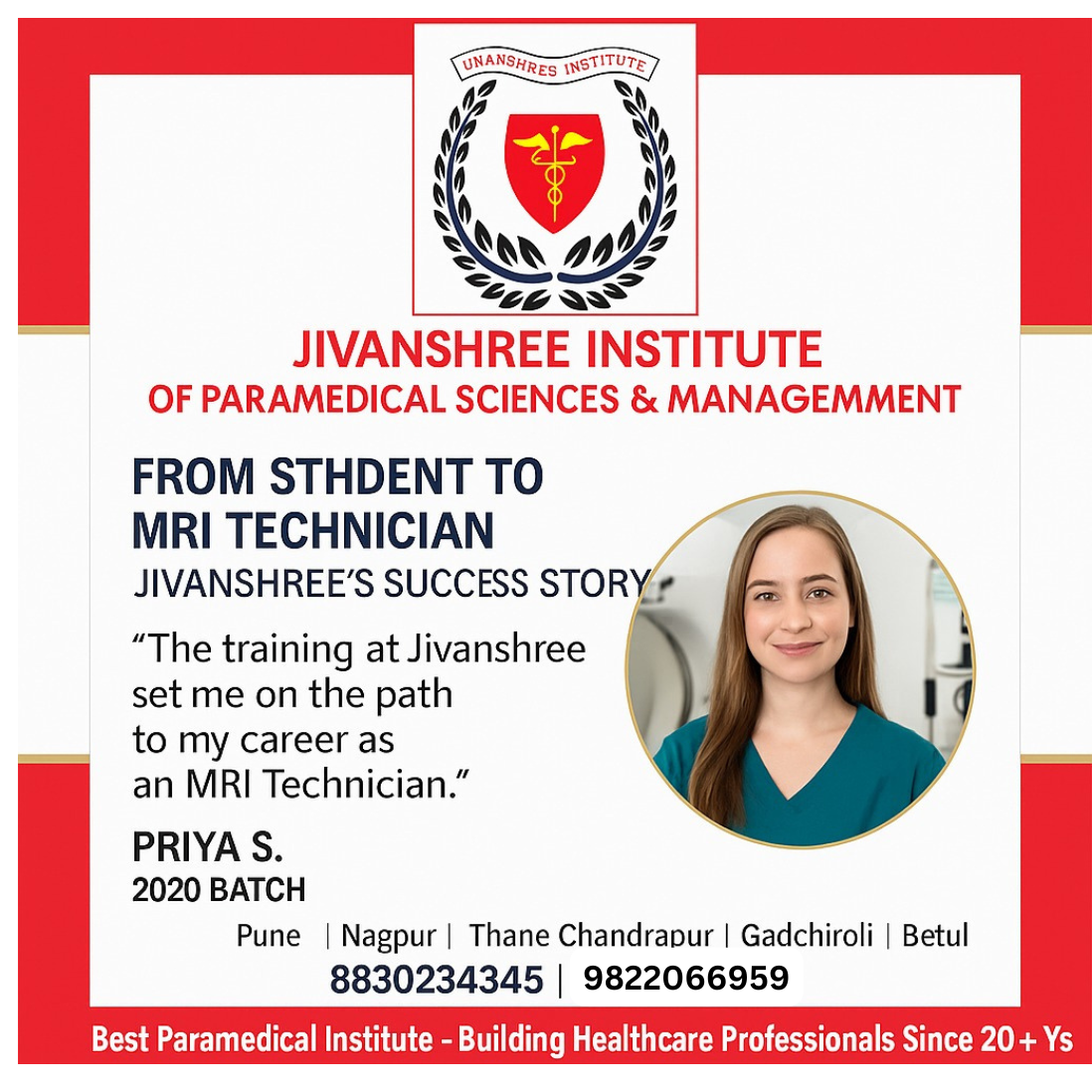 At Jivanshree Institute of Paramedical Sciences & Management, we take pride in shaping confident and skilled healthcare professionals. Priya S., from the 2020 batch, reflects on her journey: “The training at Jivanshree set me on the path to my career as an MRI Technician.” With expert faculty, practical training, and a supportive learning environment, Jivanshree continues to build strong paramedical careers across Maharashtra and beyond. 📍 Locations: Pune | Nagpur | Thane | Chandrapur | Gadchiroli | Betul 📞 8830234345 | 9822066959 🏅 Best Paramedical Institute – Building Healthcare Professionals for 20+ Years #JivanshreeInstitute #SuccessStory #MRITechnician #ParamedicalCareers #HealthcareEducation #StudentJourney #MedicalTraining #CareerGrowth #BestParamedicalInstitute