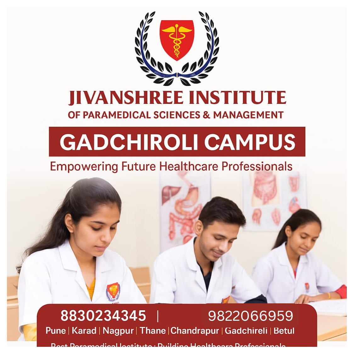 The Jivanshree Institute of Paramedical Sciences & Management continues its mission of empowering aspiring healthcare professionals through its well-established Gadchiroli Campus. Known for providing government-recognized programs such as Diploma, B.Sc., M.Sc., PG Diploma, MBA, and Ph.D., the institute ensures high-quality education combined with practical, hands-on training. Our Gadchiroli campus offers a supportive academic environment, experienced faculty, and modern lab facilities that prepare students for real-world healthcare challenges. With 20+ years of excellence, Jivanshree Institute stands as one of the leading paramedical institutions, creating skilled professionals who serve society with dedication and compassion. Join us at any of our locations—Pune, Karad, Nagpur, Thane, Chandrapur, Gadchiroli, and Betul—and take the first step toward a successful medical career. 📞 8830234345 | 9822066959 #JivanshreeInstitute #GadchiroliCampus #ParamedicalEducation #HealthcareCareers #MedicalTraining #FutureHealthcareProfessionals #BestParamedicalInstitute #PracticalTraining #SkilledHealthcare #CareerInParamedical