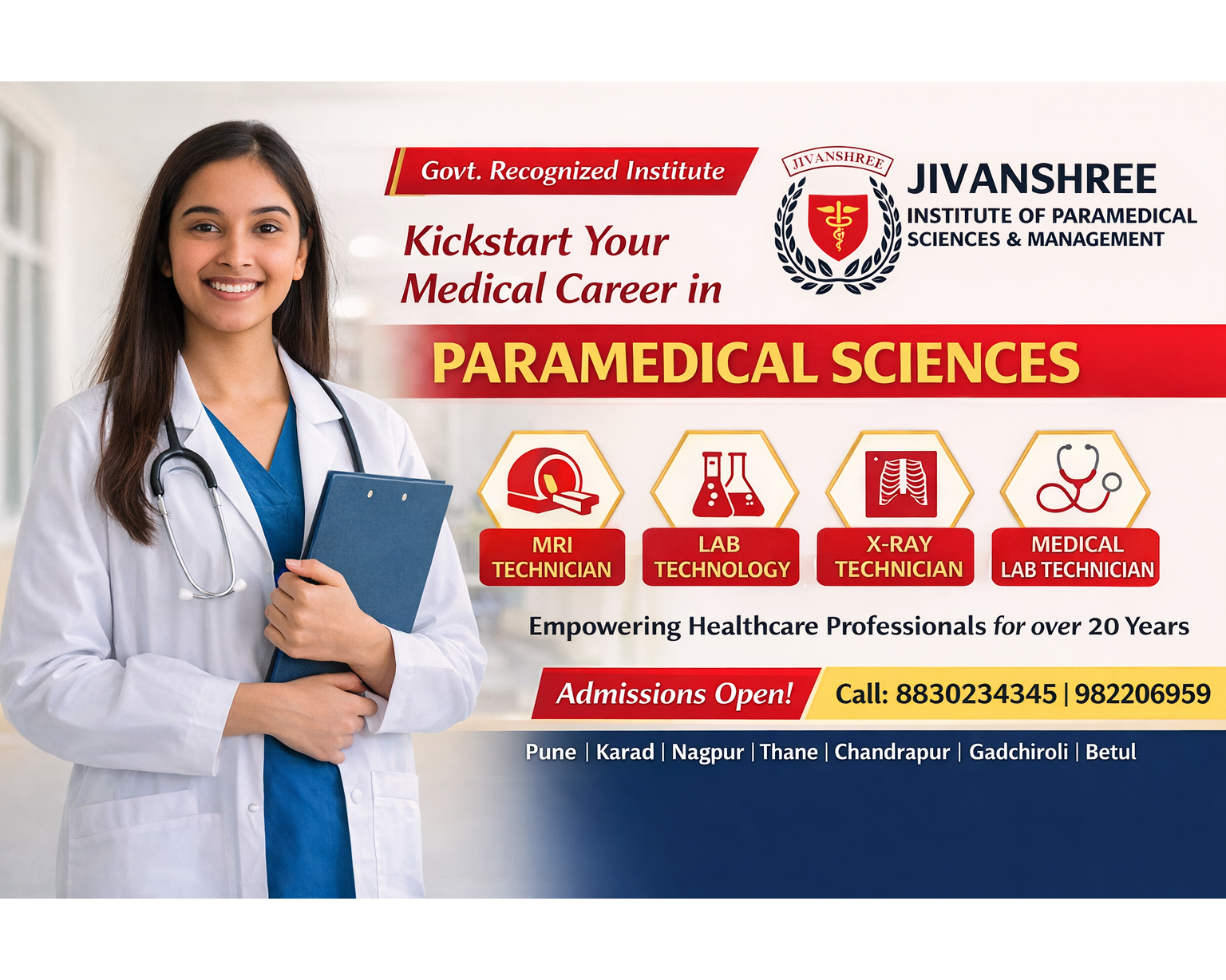 Jivanshree Institute of Paramedical Sciences and Management is a government-recognized institute dedicated to shaping skilled and confident healthcare professionals. With over 20 years of excellence in paramedical education, the institute offers a wide range of career-oriented programs including Diploma, B.Sc., M.Sc., PG Diploma, MBA, and Ph.D. courses. Students receive strong academic foundations combined with practical, hands-on training aligned with modern healthcare standards. Jivanshree Institute operates across multiple locations—Pune, Karad, Nagpur, Thane, Gadchiroli, Chandrapur, and Betul—making quality paramedical education accessible to students from diverse regions. The institute focuses on in-demand specializations such as MRI Technician, Lab Technology, X-Ray Technician, and Medical Lab Technician, ensuring excellent career opportunities in hospitals, diagnostic centers, and healthcare organizations. Admissions are now open for aspiring students who wish to build a successful and respected career in paramedical sciences. For inquiries, contact 8830234345 or 9822066959. Hashtags: #JivanshreeInstitute #ParamedicalSciences #MedicalCareer #HealthcareEducation #GovtRecognized #ParamedicalCourses #DiplomaCourses #BScMSc #MedicalTraining #AdmissionsOpen