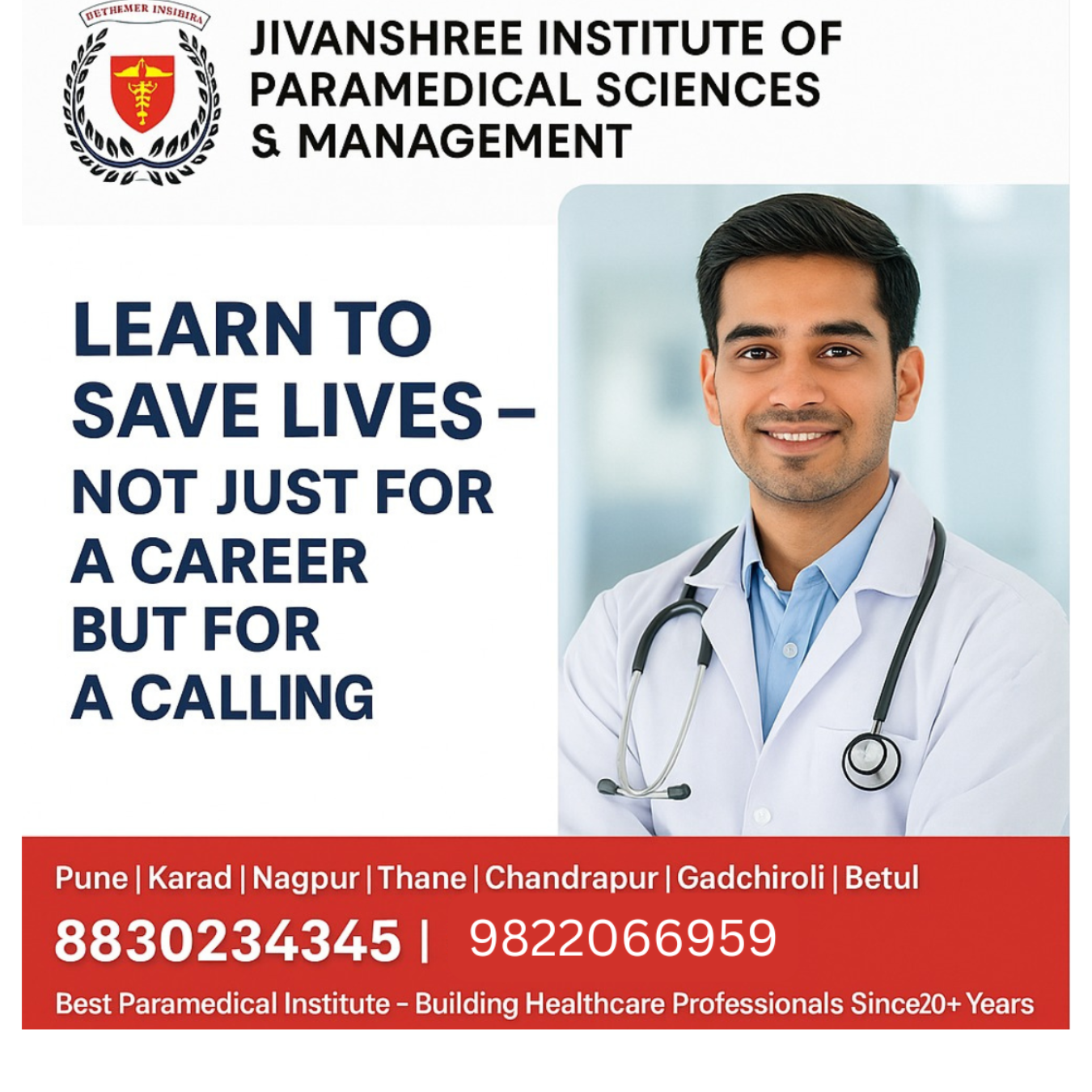At Jivanshree Institute of Paramedical Sciences and Management, we believe healthcare is more than a profession — it’s a calling to serve humanity. Since 2002, Jivanshree Institute has been empowering students through government-recognized programs such as Diploma, B.Sc., M.Sc., PG Diploma, MBA, and Ph.D. in Paramedical Sciences. With expert faculty, advanced laboratories, and hands-on clinical training, students gain the skills and confidence to make a real difference in patients’ lives. Join one of Maharashtra’s leading paramedical institutes and become part of a community dedicated to building future healthcare heroes. 📞 8830234345 | 9822066959 📍 Pune | Karad | Nagpur | Thane | Chandrapur | Gadchiroli | Betul 🌐 www.jivanshreeinstitutes.com #JivanshreeInstitute #ParamedicalEducation #HealthcareHeroes #LearnToSaveLives #MedicalTraining #ParamedicalCareers #FutureHealthcareProfessionals #HealthcareWithHeart #SkillBasedLearning #AdmissionsOpen #JivanshreeParamedical