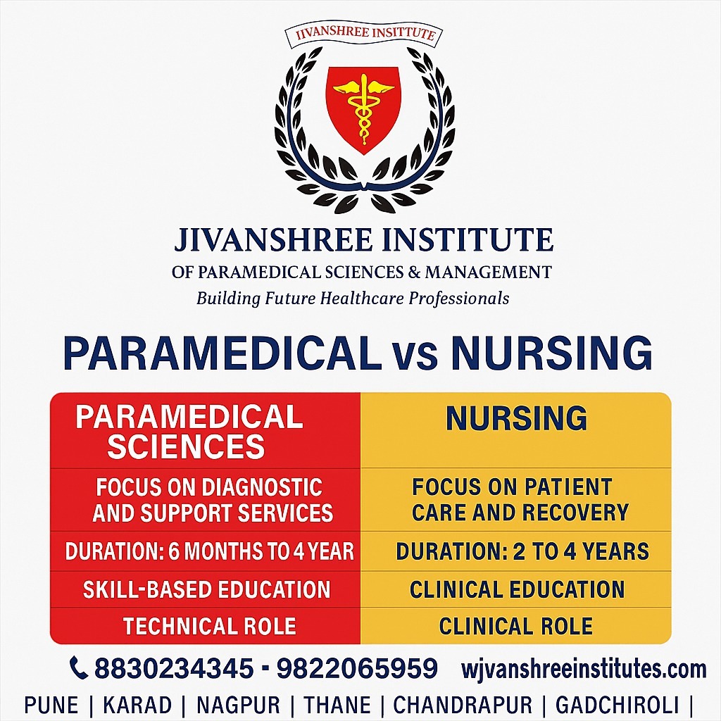Choosing the right healthcare career begins with understanding your passion and goals. At Jivanshree Institute of Paramedical Sciences and Management, we guide students to make informed decisions between Paramedical Sciences and Nursing. Paramedical Sciences focus on diagnostic, technical, and support services, offering skill-based education with courses ranging from 6 months to 4 years. Nursing, on the other hand, emphasizes patient care and clinical practice over 2 to 4 years. Both fields are essential to the healthcare system—one supports diagnosis and treatment, while the other ensures compassionate patient recovery. Join our government-recognized programs and build a career that truly matters. Courses Offered: Diploma | B.Sc. | M.Sc. | PG Diploma | MBA | Ph.D. Locations: Pune | Karad | Nagpur | Thane | Chandrapur | Gadchiroli | Betul Contact: 8830234345 | 9822066959 | www.jivanshreeinstitutes.com #ParamedicalVsNursing #HealthcareEducation #JivanshreeInstitute #ParamedicalCourses #NursingCareer #HealthcareProfessionals #SkillBasedLearning #MedicalEducation #CareerInHealthcare #GovernmentRecognized