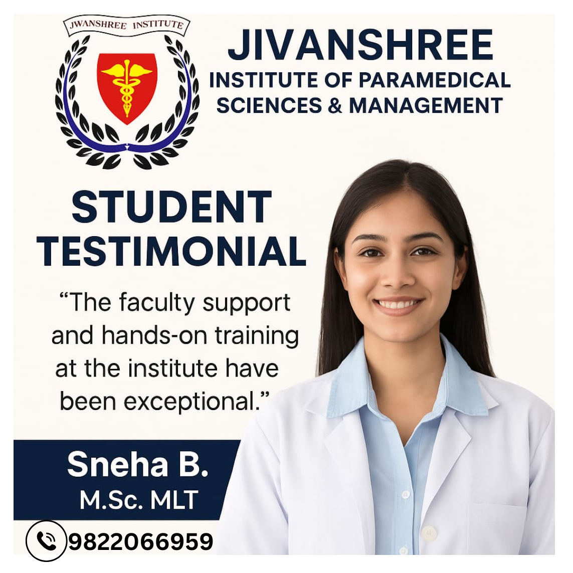 At Jivanshree Institute of Paramedical Sciences & Management, student success is our greatest achievement. Testimonials like Sneha B.’s reflect the quality of education, guidance, and hands-on training we provide. Our focus goes beyond classroom learning—we ensure every student gains practical experience, industry exposure, and the confidence to excel in their career. With dedicated faculty support and modern training facilities, students are empowered to achieve their goals in the healthcare field. Sneha’s journey is a testament to how the right mentorship and learning environment can shape a successful future. Whether it’s laboratory technology, radiology, or other paramedical fields, Jivanshree prepares students to meet real-world challenges with skill and professionalism. Join a community where your growth matters and your future is built with care.📞 Contact: 8830234345 | 9822066959 #StudentTestimonial #SuccessStories #JivanshreeInstitute #ParamedicalEducation #HealthcareCareer #StudentSuccess #HandsOnTraining #MedicalField #CareerGrowth #Inspiration