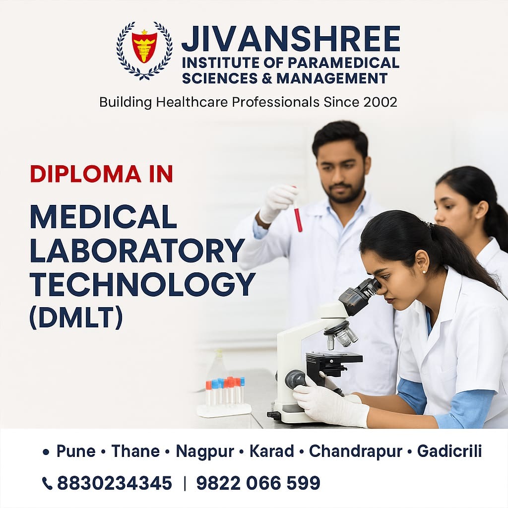 Kickstart a rewarding healthcare career with the Diploma in Medical Laboratory Technology (DMLT) at Jivanshree Institute of Paramedical Sciences & Management. This course is designed for students who aspire to play a vital role in diagnosis and patient care through laboratory science. DMLT professionals are the backbone of the healthcare system, assisting doctors by conducting accurate tests and analyses. At Jivanshree, students receive hands-on training with modern lab equipment, experienced faculty guidance, and real-world exposure to clinical environments. With the growing demand for skilled lab technicians in hospitals, diagnostic centers, and research labs, this course opens doors to diverse and stable career opportunities. Join Jivanshree and become a skilled healthcare professional contributing to saving lives behind the scenes. 📞 Contact: 8830234345 | 9822066959 #DMLT #MedicalLabTechnology #ParamedicalCourses #JivanshreeInstitute #HealthcareCareer #LabTechnician #MedicalEducation #CareerInHealthcare #FutureReady #SkillDevelopment