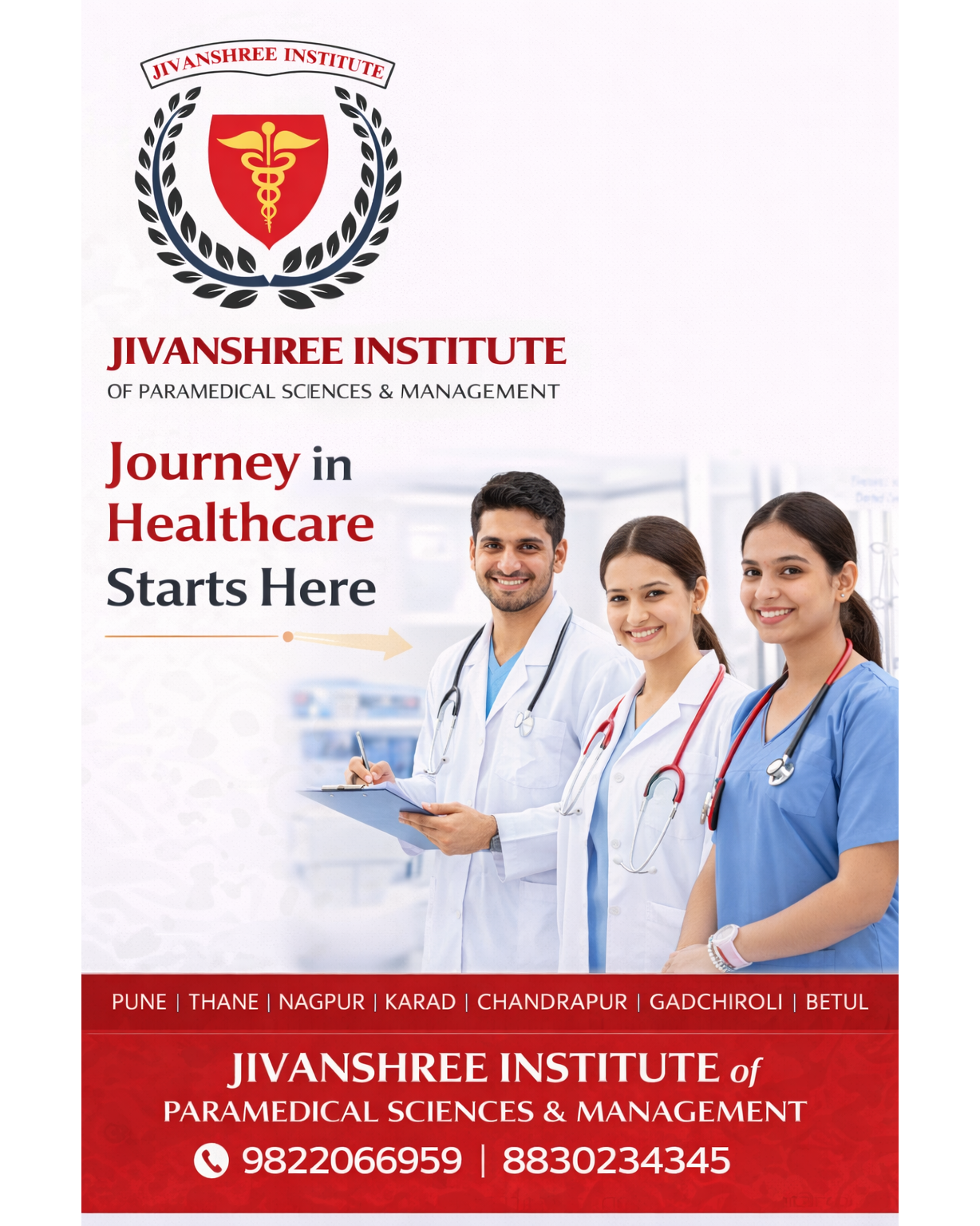 Begin your journey in healthcare with Jivanshree Institute of Paramedical Sciences and Management, where your dreams of building a successful medical career take shape. With a strong focus on quality education and practical training, we prepare students to become skilled and confident healthcare professionals. As a government recognized institute, Jivanshree offers a wide range of courses including Diploma, B.Sc., M.Sc., PG Diploma, MBA, and Ph.D., designed to meet industry standards and ensure career growth. Our expert faculty, modern facilities, and hands-on learning approach help students gain real-world experience. With campuses in Pune, Karad, Nagpur, Thane, Chandrapur, Gadchiroli, and Betul, we make quality paramedical education accessible across regions. Step into a profession that makes a difference every day. For admissions and inquiries, contact 8830234345 or 9822066959 today. #HealthcareCareer #JivanshreeInstitute #ParamedicalCourses #MedicalEducation #CareerInHealthcare #FutureDoctors #AlliedHealth #CareerGrowth #HealthcareProfessionals #StartYourJourney