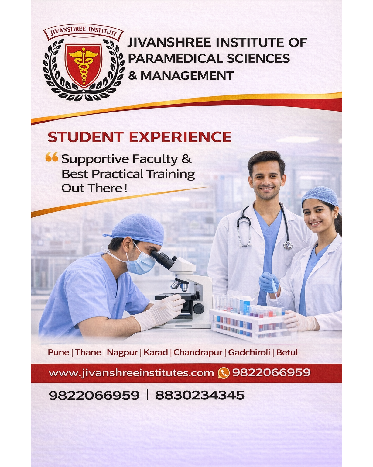 At Jivanshree Institute of Paramedical Sciences and Management, student success is our top priority. We provide a supportive learning environment with expert faculty and the best practical training to help students excel in the healthcare industry. Our government-recognized programs are designed to build strong skills through hands-on laboratory experience, modern equipment, and real-world exposure. We offer a wide range of courses including Diploma, B.Sc., M.Sc., PG Diploma, MBA, and Ph.D. in paramedical and allied health sciences. With campuses across Pune, Karad, Nagpur, Thane, Gadchiroli, Chandrapur, and Betul, we are committed to shaping future healthcare professionals. 📞 Contact us today: 8830234345 / 9822066959 Join Jivanshree Institute and begin your journey toward a successful medical career! #JivanshreeInstitute #StudentExperience #ParamedicalEducation #PracticalTraining #SupportiveFaculty #HealthcareCareers #AlliedHealthSciences #MedicalStudents #GovernmentRecognized #AdmissionsOpen