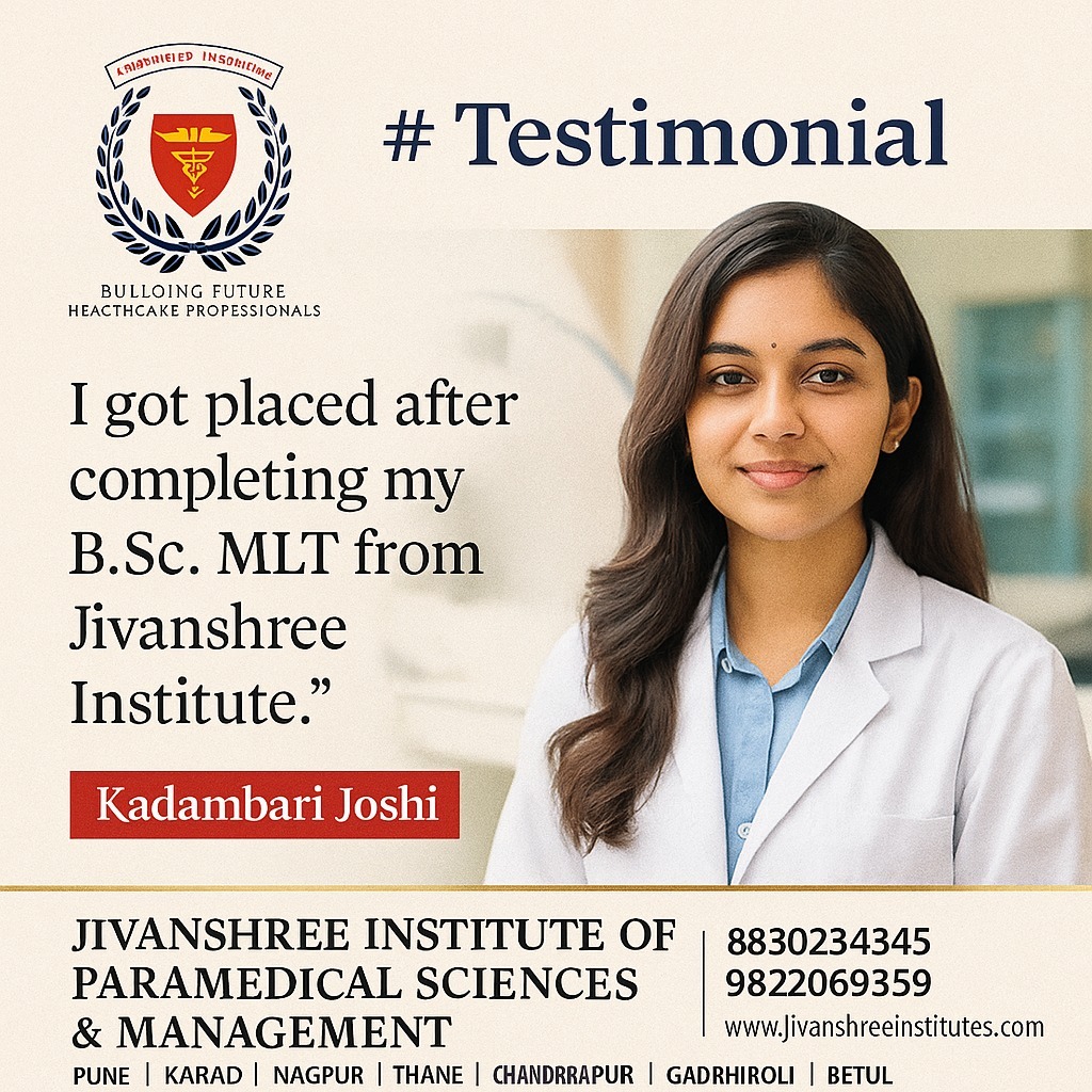 At Jivanshree Institute of Paramedical Sciences and Management, we take pride in empowering students to build successful careers in the healthcare sector. Our graduate, Kadambari Joshi, shares her success story — “I got placed after completing my B.Sc. MLT from Jivanshree Institute.” We are committed to providing quality, government-recognized education through programs such as Diploma, B.Sc., M.Sc., PG Diploma, MBA, and Ph.D. Our practical, skill-based learning approach and strong placement support help students achieve professional excellence and contribute to the healthcare industry with confidence. With branches in Pune, Karad, Nagpur, Thane, Chandrapur, Gadchiroli, and Betul, Jivanshree Institute continues to shape the future of healthcare professionals across India. Contact: 8830234345 | 9822069359 Website: www.jivanshreeinstitutes.com #JivanshreeInstitute #StudentSuccess #HealthcareEducation #ParamedicalCourses #BScMLT #CareerInHealthcare #SkillBasedLearning #BuildingFutureHealthcareProfessionals #HealthcareTraining #MedicalEducation