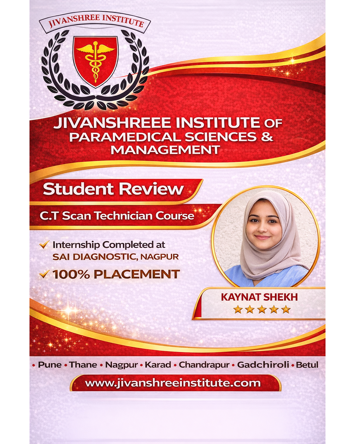 This inspiring student review highlights the commitment of Jivanshree Institute of Paramedical Sciences and Management towards quality education and successful career outcomes. As a government-recognized institute, Jivanshree offers industry-relevant programs including Diploma, B.Sc., M.Sc., PG Diploma, MBA, and Ph.D. courses designed to prepare students for real-world healthcare challenges. Featured here is a successful student from the C.T. Scan Technician Course, who completed hands-on internship training at Sai Diagnostic, Nagpur, and achieved 100% placement, reflecting the institute’s strong academic support and placement assistance. With multiple campuses across Pune, Karad, Nagpur, Thane, Gadchiroli, Chandrapur, and Betul, Jivanshree ensures accessible education, modern infrastructure, and expert faculty. We remain dedicated to shaping skilled healthcare professionals who contribute meaningfully to the medical sector. For admissions and career guidance, contact 8830234345 | 9822066959. #StudentReview #JivanshreeInstitute #ParamedicalSuccess #CTScanTechnician #100PercentPlacement #HealthcareCareers #GovernmentRecognized #SkillBasedEducation #MedicalTraining #FutureHealthcare