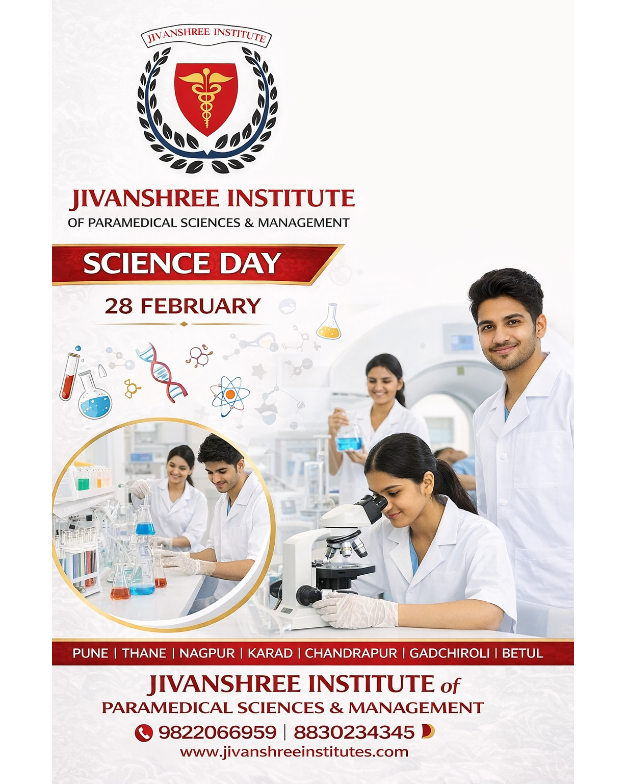 On the occasion of National Science Day, Jivanshree Institute of Paramedical Sciences & Management celebrates the power of science in transforming healthcare and saving lives. Science is the backbone of modern medicine. From laboratory diagnostics to advanced medical imaging and patient care, scientific knowledge plays a vital role in every step of healthcare services. At Jivanshree Institute, we focus on practical learning, innovation, and skill-based education to prepare students for real-world medical challenges. Our state-of-the-art laboratories, experienced faculty, and hands-on training ensure that students don’t just study science — they experience it. Let’s honor the spirit of discovery, research, and innovation that drives progress in the medical field. 📍 Campuses: Pune | Thane | Nagpur | Karad | Chandrapur | Gadchiroli | Betul 📞 9822066959 | 8830234345 🌐 www.jivanshreeinstitutes.com Empowering future healthcare professionals through science and excellence. #NationalScienceDay #ScienceDay2026 #JivanshreeInstitute #ParamedicalSciences #HealthcareEducation #MedicalLaboratory #FutureHealthcare #AdmissionsOpen #28February