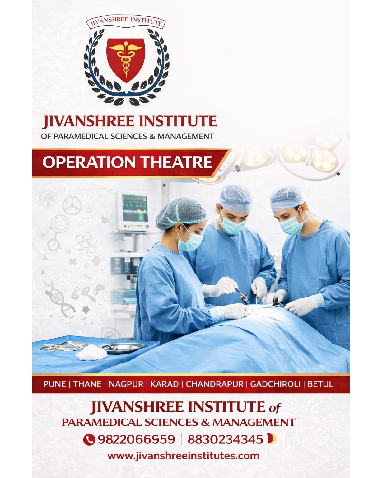 Step into the world of precision, discipline, and life-saving expertise with Operation Theatre Technology at Jivanshree Institute of Paramedical Sciences & Management. Operation Theatre professionals play a crucial role in surgical procedures — assisting surgeons, maintaining sterile environments, handling surgical instruments, and ensuring patient safety throughout the operation. Their skills, alertness, and technical knowledge directly contribute to successful surgeries. At Jivanshree Institute, students receive: ✔️ Hands-on practical training ✔️ Modern laboratory facilities ✔️ Experienced faculty guidance ✔️ Real-time clinical exposure ✔️ Career-oriented skill development Build a rewarding career in the healthcare sector and become an essential part of the surgical team. 📍 Campuses: Pune | Thane | Nagpur | Karad | Chandrapur | Gadchiroli | Betul 📞 9822066959 | 8830234345 🌐 www.jivanshreeinstitutes.com Admissions Open – Secure Your Future in Healthcare Today! #OperationTheatre #OTTechnician #ParamedicalCourse #HealthcareCareer #MedicalEducation #JivanshreeInstitute #AdmissionsOpen #SurgicalCare