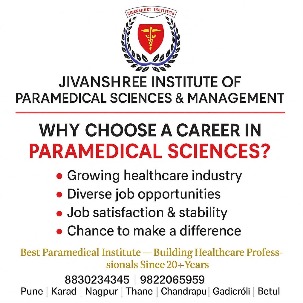A career in paramedical sciences is one of the fastest-growing and most rewarding paths in the healthcare industry today. 🌟 With the rising demand for skilled healthcare professionals, paramedical courses open doors to diverse job opportunities in hospitals, diagnostic centers, and clinics. These roles not only offer job stability but also provide immense satisfaction by allowing you to make a real difference in people’s lives. At Jivanshree Institute of Paramedical Sciences & Management, we focus on building future-ready professionals through practical training, expert guidance, and industry-relevant education. Our programs are designed to equip students with the skills and confidence needed to succeed in the dynamic healthcare sector. If you’re passionate about healthcare and want a stable, meaningful career, paramedical sciences is the perfect choice. Start your journey with us today! 📞 Contact: 9822066959 #ParamedicalCareer #HealthcareJobs #JivanshreeInstitute #MedicalEducation #CareerInHealthcare #FutureDoctors #HealthcareProfessionals #StudyInIndia #JobStability #CareerGrowth