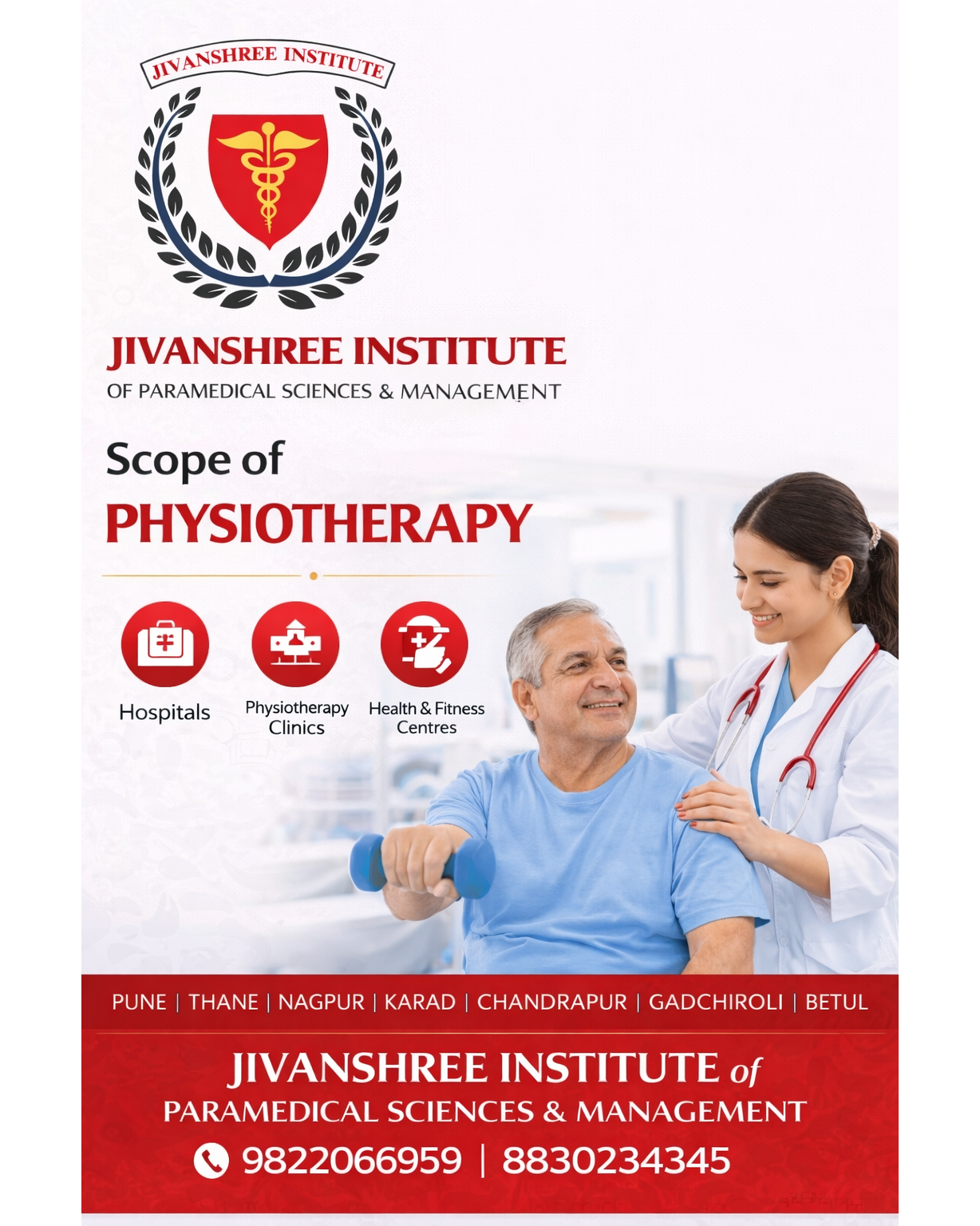 Discover a rewarding future in healthcare with Jivanshree Institute of Paramedical Sciences and Management. Physiotherapy is a rapidly growing field offering diverse career opportunities in hospitals, physiotherapy clinics, and health & fitness centres. At Jivanshree, we prepare students to excel through quality education, practical exposure, and industry-oriented training. As a government recognized institute, we offer a wide range of programs including Diploma, B.Sc., M.Sc., PG Diploma, MBA, and Ph.D., ensuring a strong academic foundation and career growth. With campuses in Pune, Karad, Nagpur, Thane, Chandrapur, Gadchiroli, and Betul, we make professional education accessible to aspiring healthcare students. Build your future by gaining hands-on experience and expert guidance in physiotherapy. Step into a profession where you can make a real difference in people’s lives every day. For admissions, contact 8830234345 or 9822066959 today. #Physiotherapy #HealthcareCareer #JivanshreeInstitute #ParamedicalCourses #CareerInHealthcare #MedicalEducation #FutureProfessionals #HealthAndFitness #GovernmentRecognized #CareerGrowth