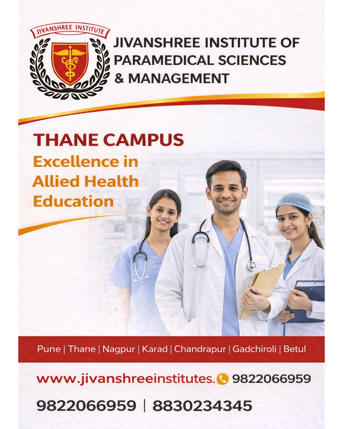 Jivanshree Institute of Paramedical Sciences & Management proudly brings quality Allied Health Education to Thane Campus. We are committed to shaping the next generation of healthcare professionals through: ✅ Industry-focused training ✅ Expert faculty support ✅ Practical learning & clinical exposure ✅ Career-oriented paramedical courses Join us and build a successful future in the healthcare sector. 📍 Campuses: Pune | Thane | Nagpur | Karad | Chandrapur | Gadchiroli | Betul 📞 Contact: 9822066959 / 8830234345 🌐 www.jivanshreeinstitutes.com #JivanshreeInstitute #ThaneCampus #ParamedicalCourses #AlliedHealthEducation #HealthcareCareer #MedicalTraining #AdmissionsOpen #FutureHealthcareProfessionals