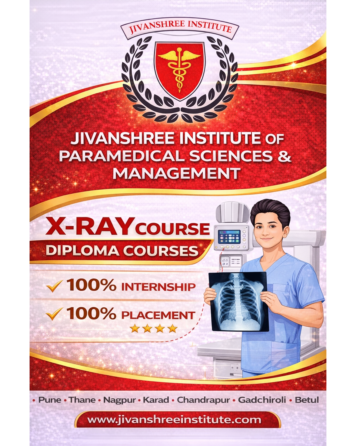 Jivanshree Institute of Paramedical Sciences and Management offers an excellent opportunity to start a rewarding healthcare career through its X-Ray Course Diploma Program. This government-recognized course is designed for students who wish to gain professional skills in medical imaging and diagnostic radiology. With a strong focus on practical learning, the program provides advanced training in X-ray technology, patient handling, and radiographic procedures. Jivanshree Institute ensures 100% internship and 100% placement assistance, helping students confidently enter hospitals, diagnostic centers, and healthcare institutions. The institute offers multiple career-oriented programs including Diploma, B.Sc., M.Sc., PG Diploma, MBA, and Ph.D. Courses are available across various locations such as Pune, Karad, Nagpur, Thane, Gadchiroli, Chandrapur, and Betul. Join Jivanshree Institute and become part of a trusted institute shaping skilled paramedical professionals. 📞 Contact Now: 8830234345 | 9822066959 #XRayCourse #RadiologyDiploma #JivanshreeInstitute #ParamedicalSciences #MedicalImaging #HealthcareCareer #GovernmentRecognized #InternshipAndPlacement #StudyInIndia #RadiologyTechnician